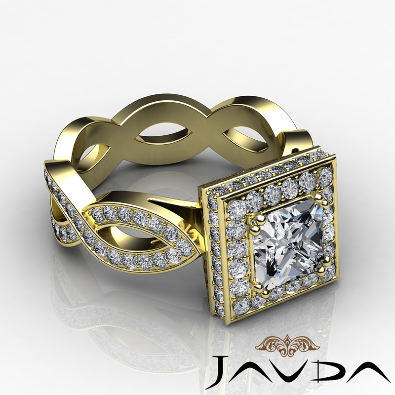 Twisted Shank Halo Pave Set style Engagement Ring, center is Princess shape Diamond Report by GIA, J Color & VS1 clarity, Made in 14k Yellow Gold (2.2 ct. tw.)
