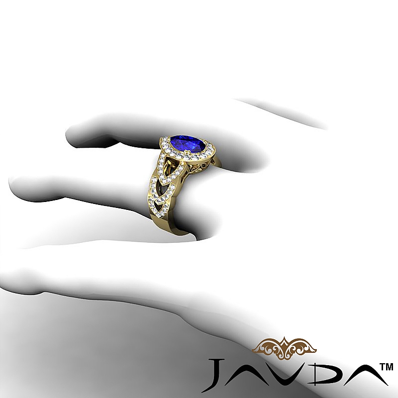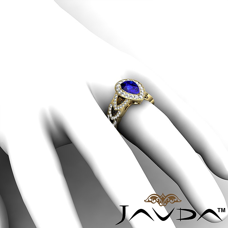 Petite Pave Set Halo Filigree style Engagement Ring, center is Pear shape D Block Tanzanite Report by , Color & clarity, Made in 14k Yellow Gold (2.29 ct. tw.)