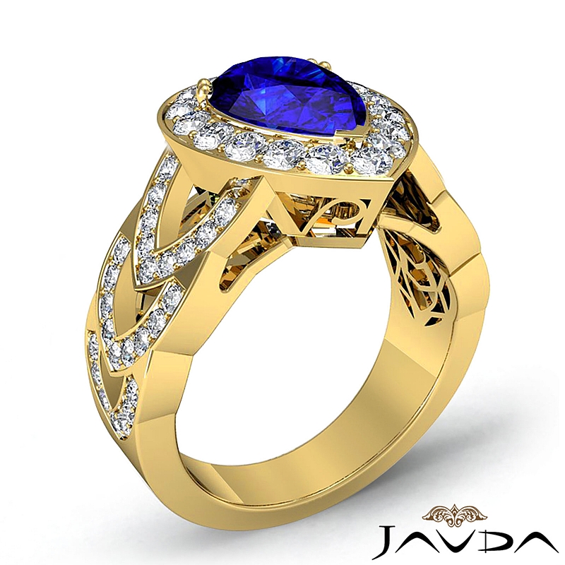Gorgeous Diamond Engagement Pear Semi Mount Ring Halo Pre-Set 14k Yellow Gold 1.29Ct.