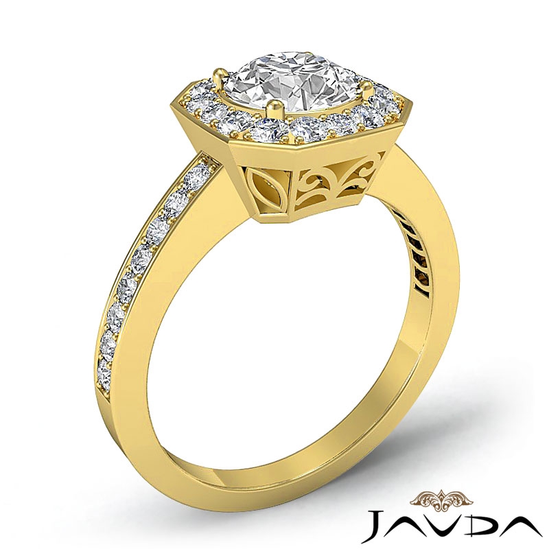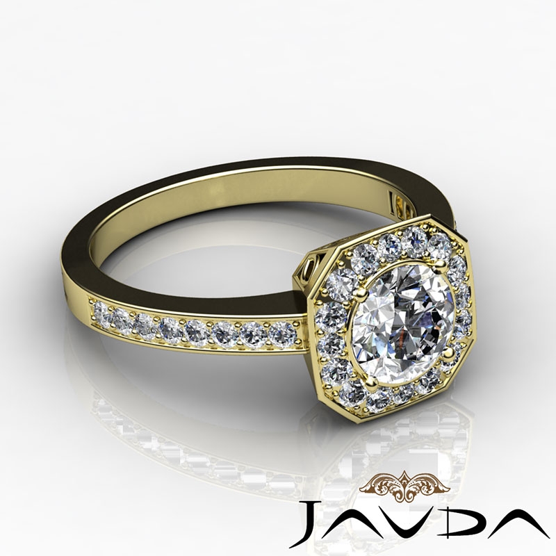 Hexagon Style Halo Micro Pave style Engagement Ring, center is Round shape Diamond Report by IGI, G Color & VVS2 clarity, Made in 14k Yellow Gold (1.52 ct. tw.)
