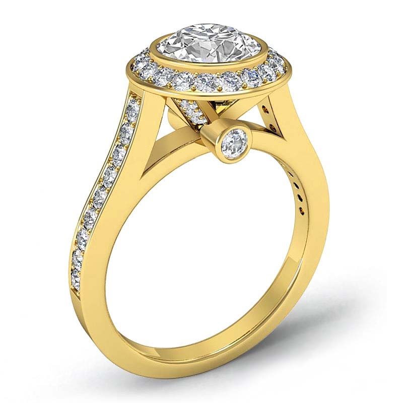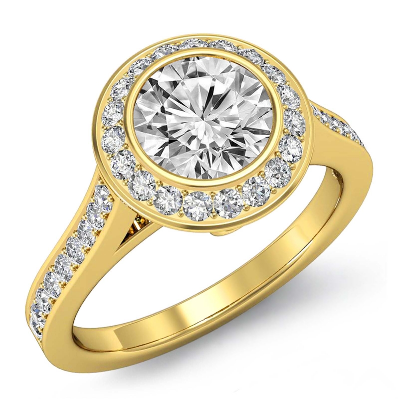 Halo Pave Setting Diamond Engagement Ring 14k Yellow Gold Round Semi Mount 0.47Ct.