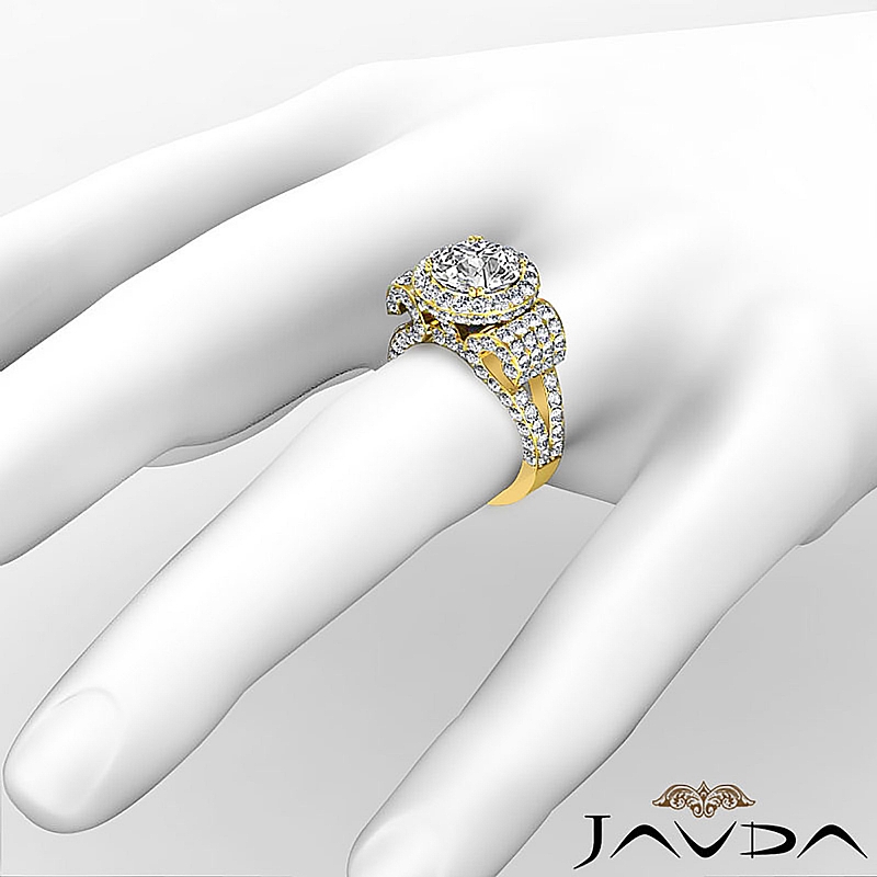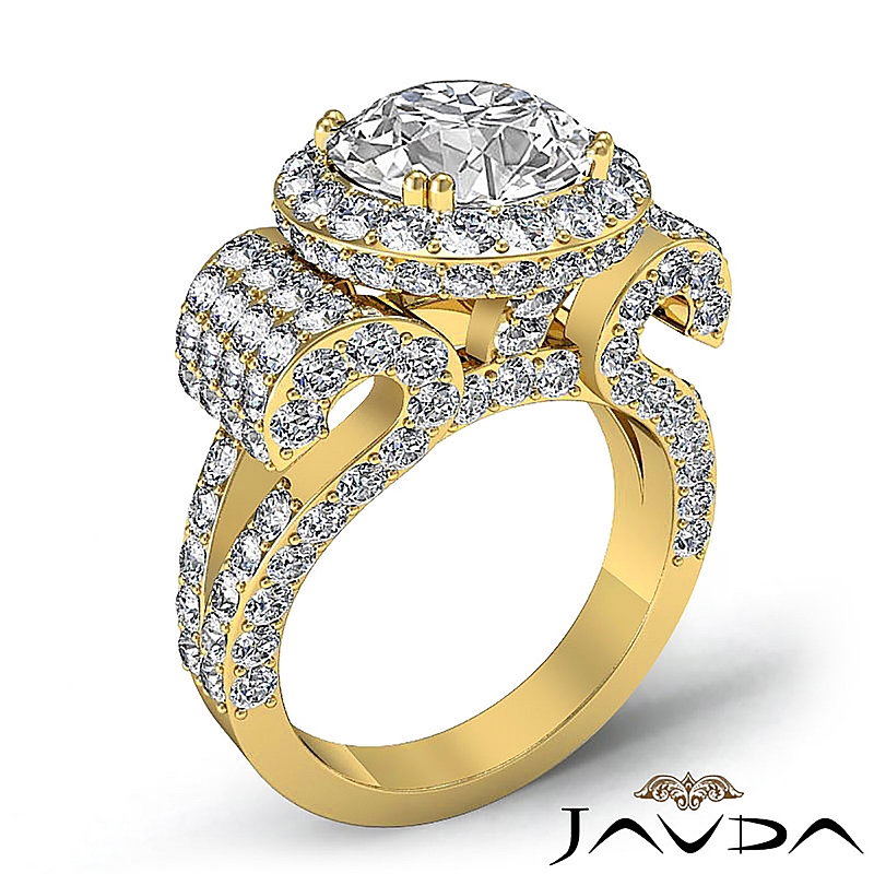 Round Diamond Engagement Ring Antique & Vintage Halo Pave Semi Mount 18k Yellow Gold 3.5Ct.