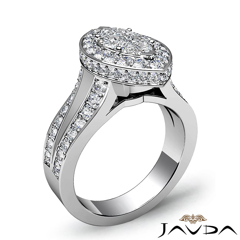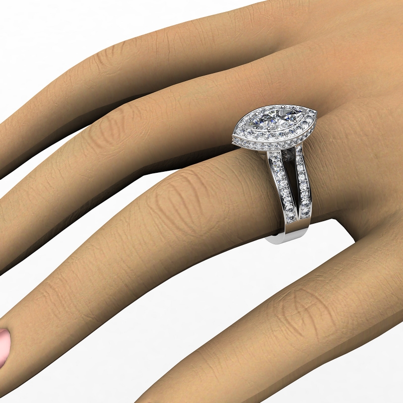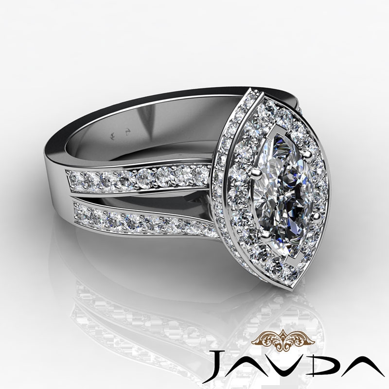 Split Shank Halo Pave style Engagement Ring, center is Marquise shape Diamond Report by GIA, I Color & SI1 clarity, Made in 18k White Gold (2.27 ct. tw.)