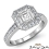 Diamond Engagement Halo Pre-Set Ring Asscher Semi Mount 18k White Gold 0.37Ct.