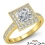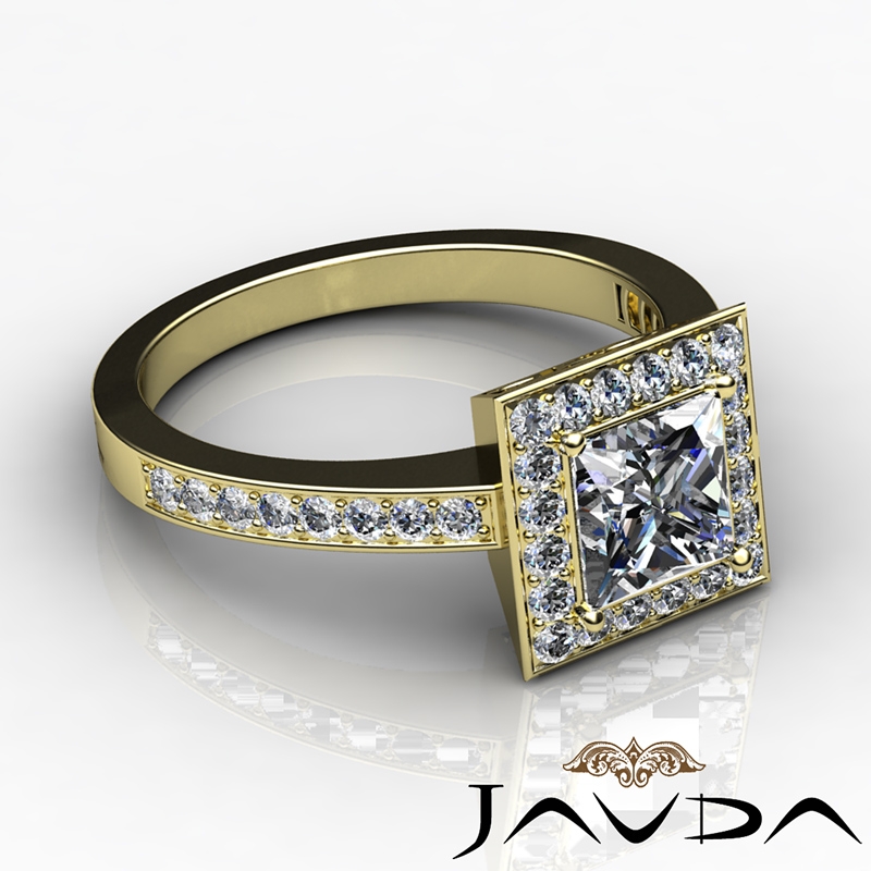 Diamond Engagement Ring Halo Pave Setting Princess Semi Mount 18k Yellow Gold 0.38Ct.