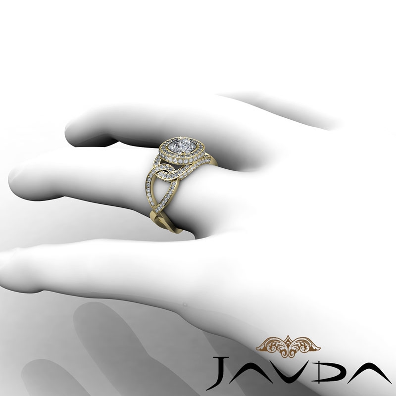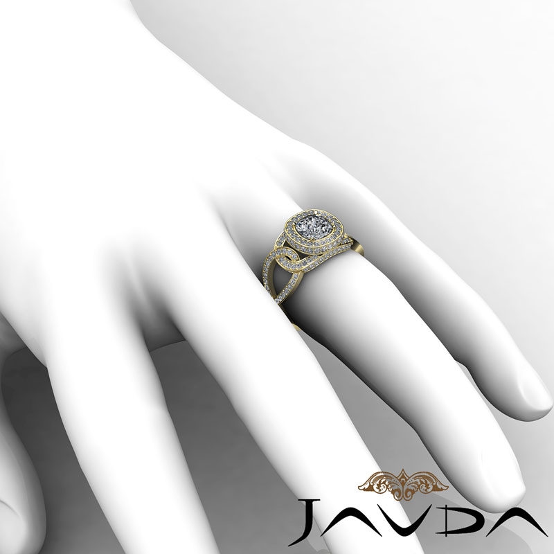 1.8Ct Diamond Engagement Ring Halo Setting 14k Yellow Gold Cushion Semi Mount.