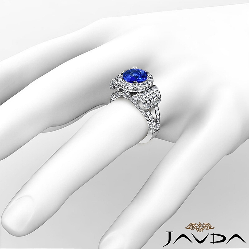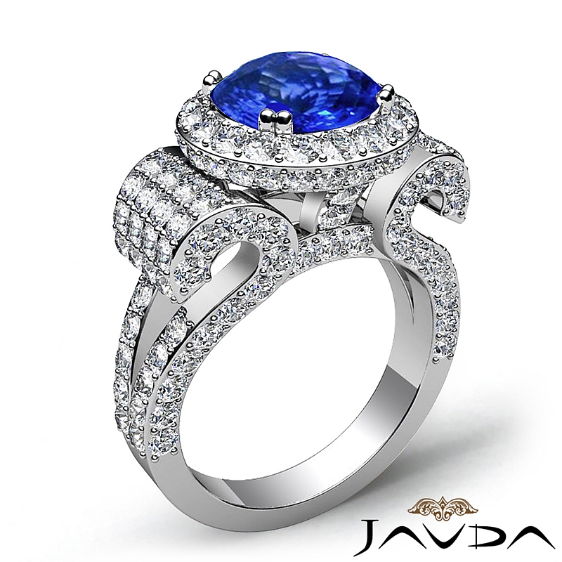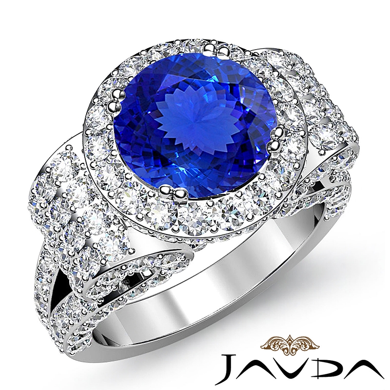 style Engagement Ring, center is Round shape Blue Tanzanite Report by , Color & clarity, Made in Platinum 950 (6 ct. tw.)