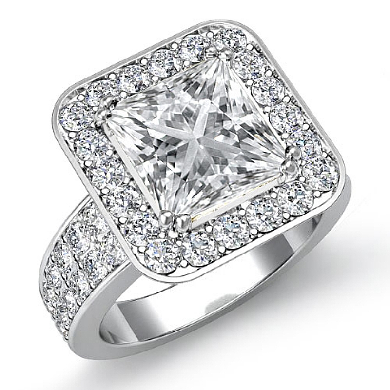 Princess Semi Mount Diamond Engagement Ring 14k White Gold Halo Pave Setting 1Ct.