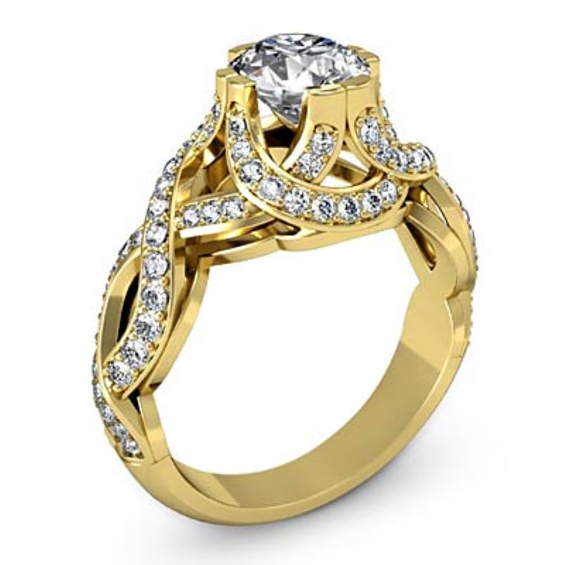 Diamond Antique Engagement Setting Ring Round Semi Mount Hand Pave Sets 18k Yellow Gold 1Ct.