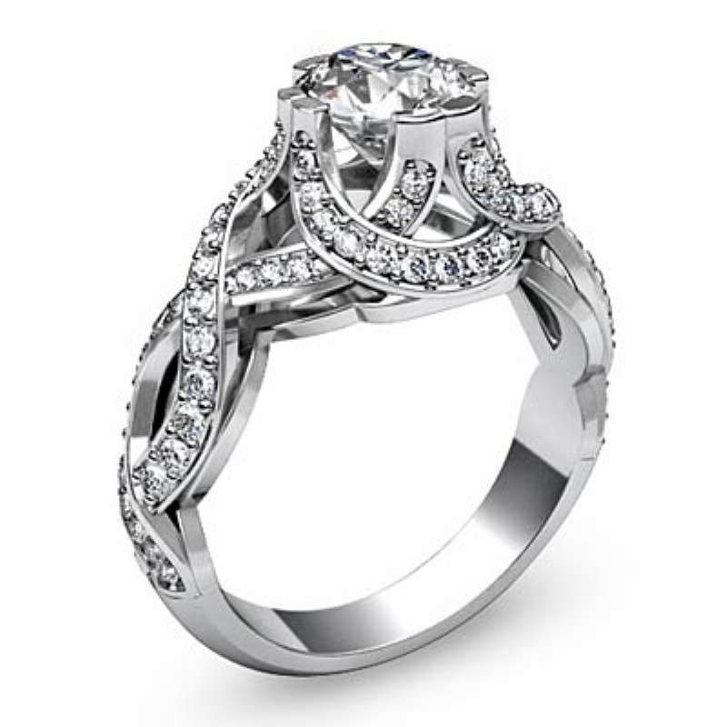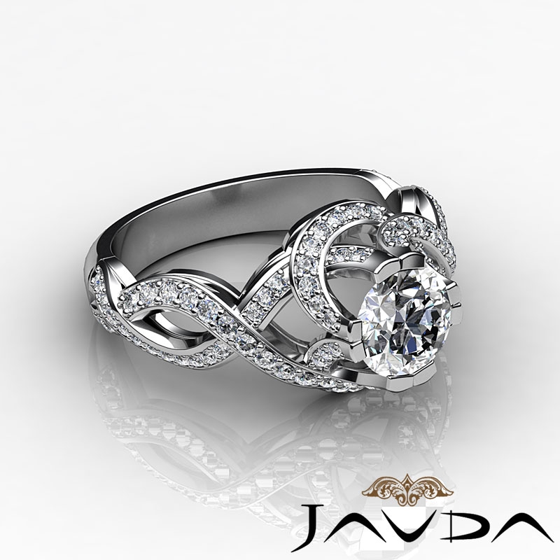 Diamond Antique Engagement Setting Ring Round Semi Mount Hand Pave Sets Platinum 950 1Ct.