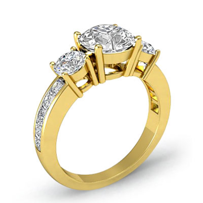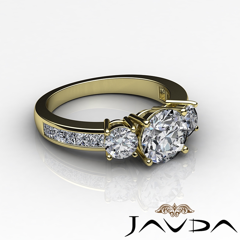 3 Stone Round Diamond Engagement Ring 18k Yellow Gold Princess Channel Setting 1Ct.