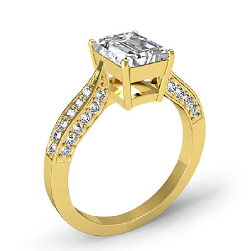 style Engagement Ring, center is Emerald shape Diamond Report by GIA, D Color & VVS2 clarity, Made in 14k Yellow Gold (0.9 ct. tw.)