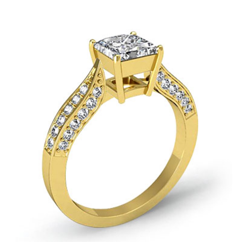 style Engagement Ring, center is Princess shape Diamond Report by GIA, H Color & VVS2 clarity, Made in 18k Yellow Gold (0.92 ct. tw.)
