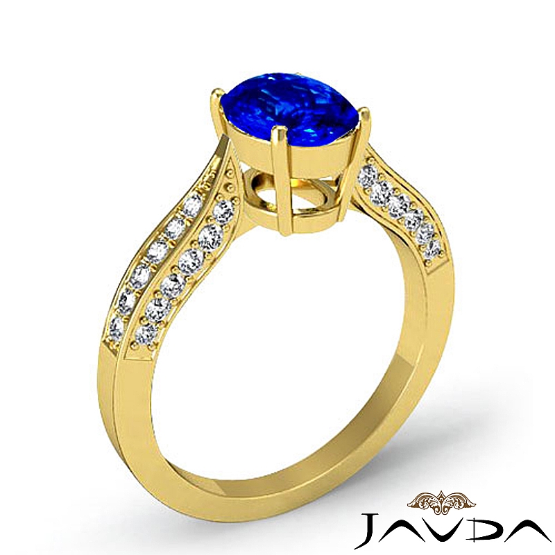 style Engagement Ring, center is Oval shape D Block Tanzanite Report by , Color & clarity, Made in 18k Yellow Gold (1.4 ct. tw.)