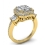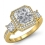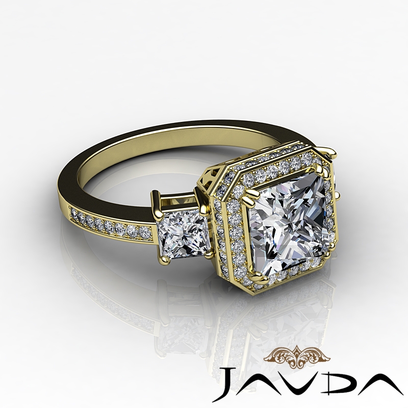 Circa Halo Pave Three Stone style Engagement Ring, center is Princess shape Diamond Report by GIA, J Color & VS1 clarity, Made in 18k Yellow Gold (2.06 ct. tw.)