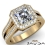 Halo Setting Diamond Engagement Asscher Ring 14k Yellow Gold Semi Mount 0.88Ct.