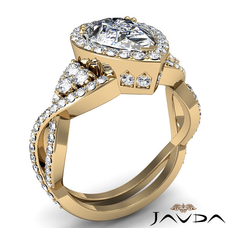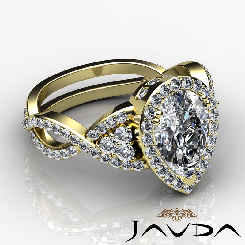 Diamond Engagement Pear Semi Mount 14k Yellow Gold Halo Pave Setting Ring 1.7Ct - javda.com
