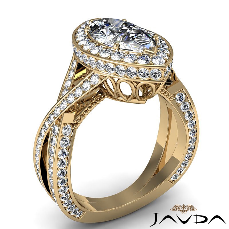 Halo Pave Setting Diamond Engagement Ring Marquise Semi Mount 14k Yellow Gold 1.85Ct.