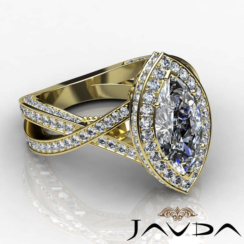 Criss Cross Shank Circa Halo style Engagement Ring, center is Marquise shape Diamond Report by GIA, I Color & SI1 clarity, Made in 14k Yellow Gold (2.8 ct. tw.)