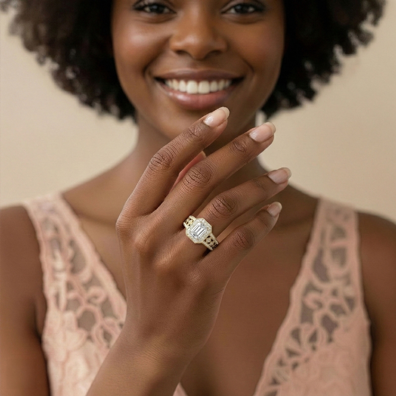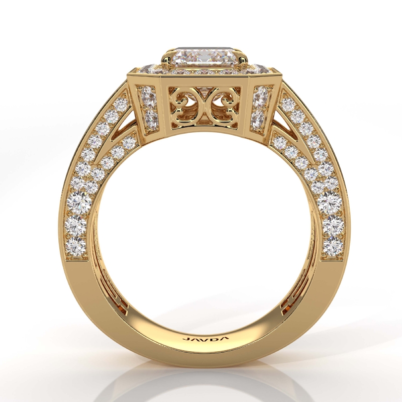 Emerald Semi-Mount Vintage Diamond Engagement Ring Halo Pave Setting 14k Yellow Gold 2.3Ct.
