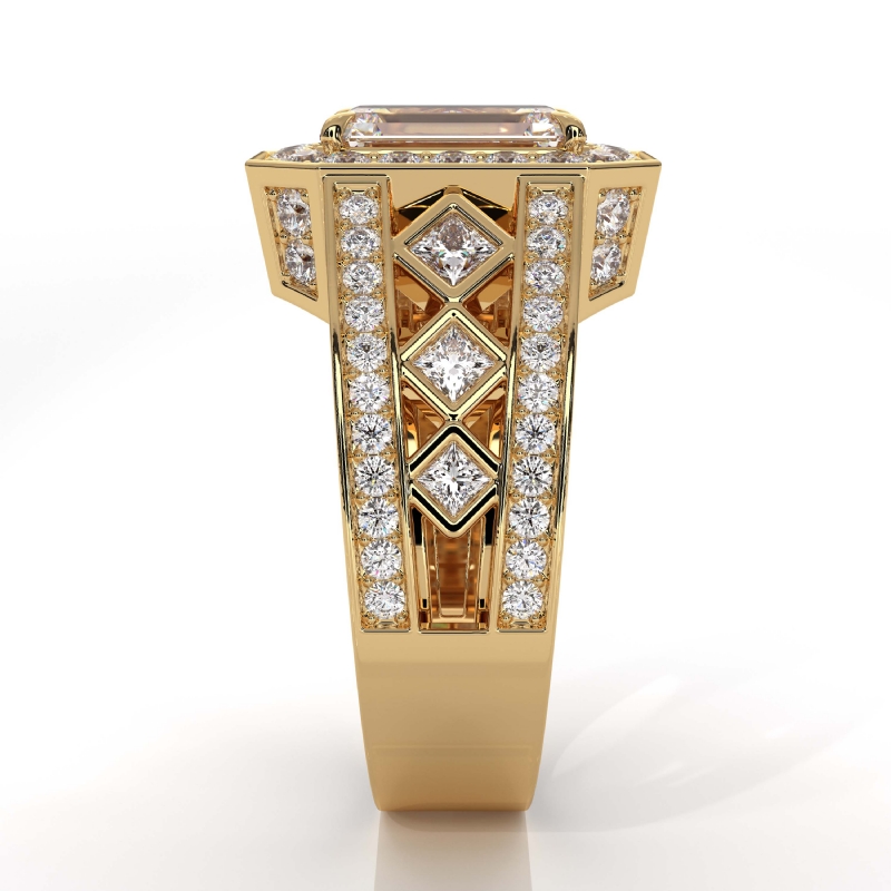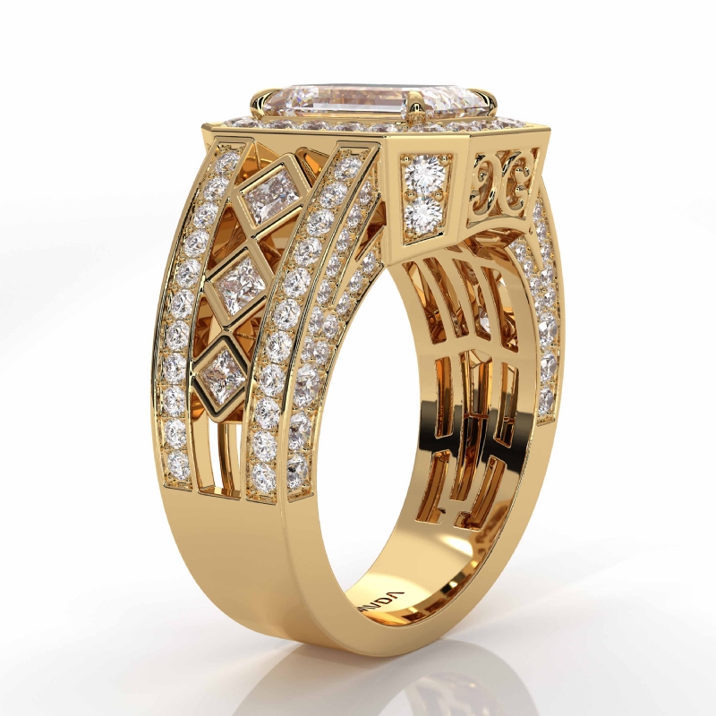 Vintage Style Bezel Halo Pave style Engagement Ring, center is Emerald shape Diamond Report by IGI, D Color & VS1 clarity, Made in 14k Yellow Gold (3.3 ct. tw.)