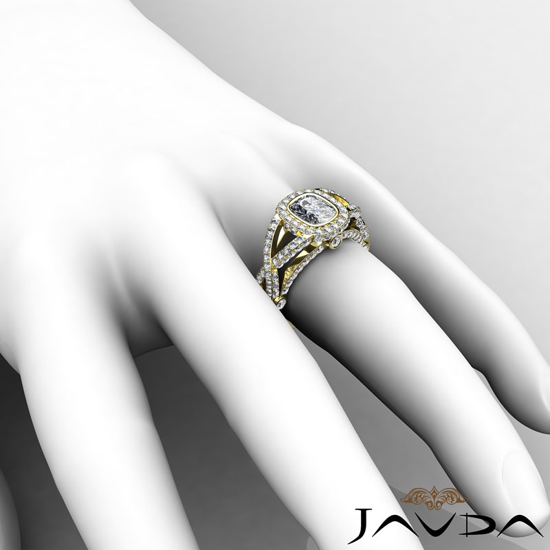 Cushion Cut Diamond Engagement Ring SemiMount 18k Yellow Gold Halo Setting 1.45Ct - javda.com