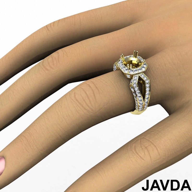 Round Cut Diamond Engagement Ring Semi Mount 18k Yellow Gold Halo Setting 1.45Ct.