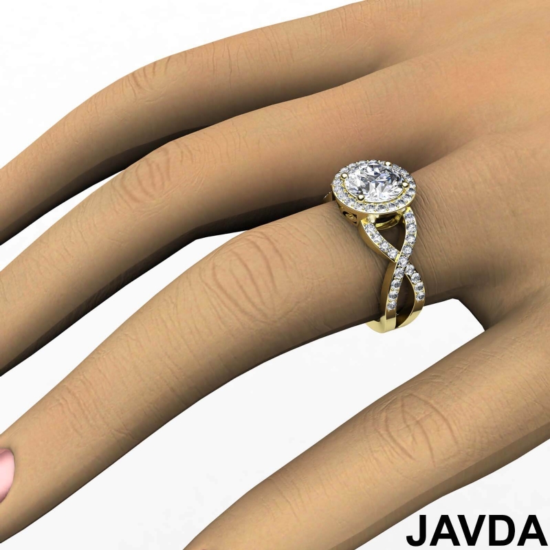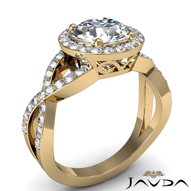 Round Semi Mount Diamond Engagement Ring Split-Curve Shank 18k Yellow Gold 0.7Ct - javda.com