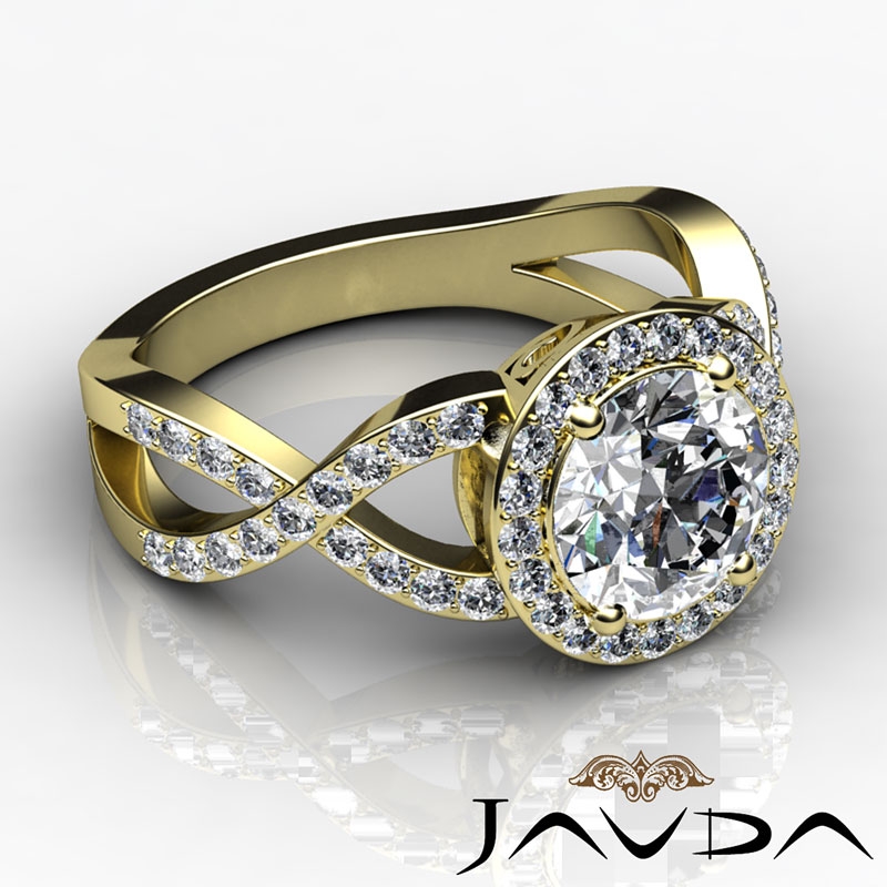 Halo Pave Cross Shank Filigree style Engagement Ring, center is Round shape Diamond Report by GIA, I Color & SI1 clarity, Made in 18k Yellow Gold (1.7 ct. tw.)