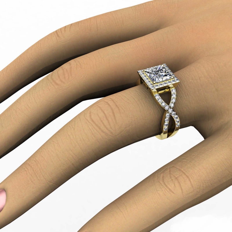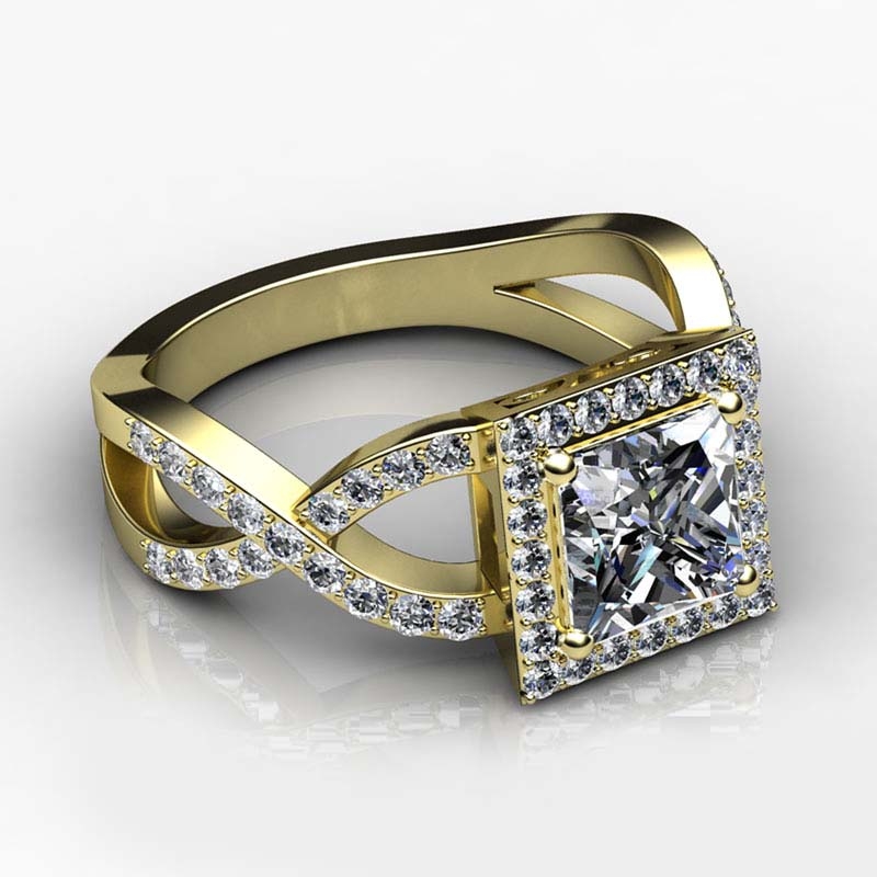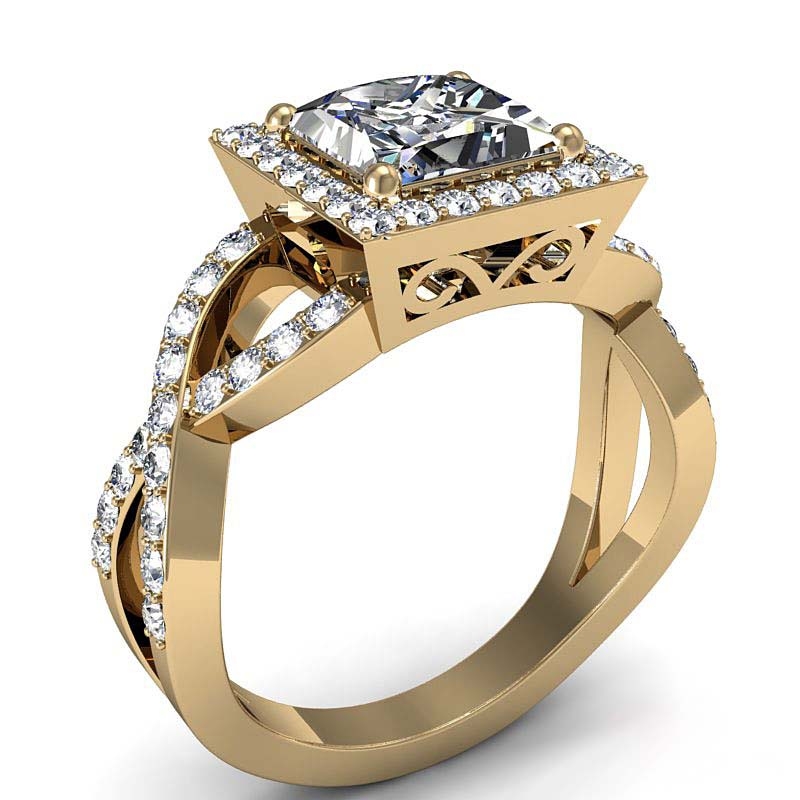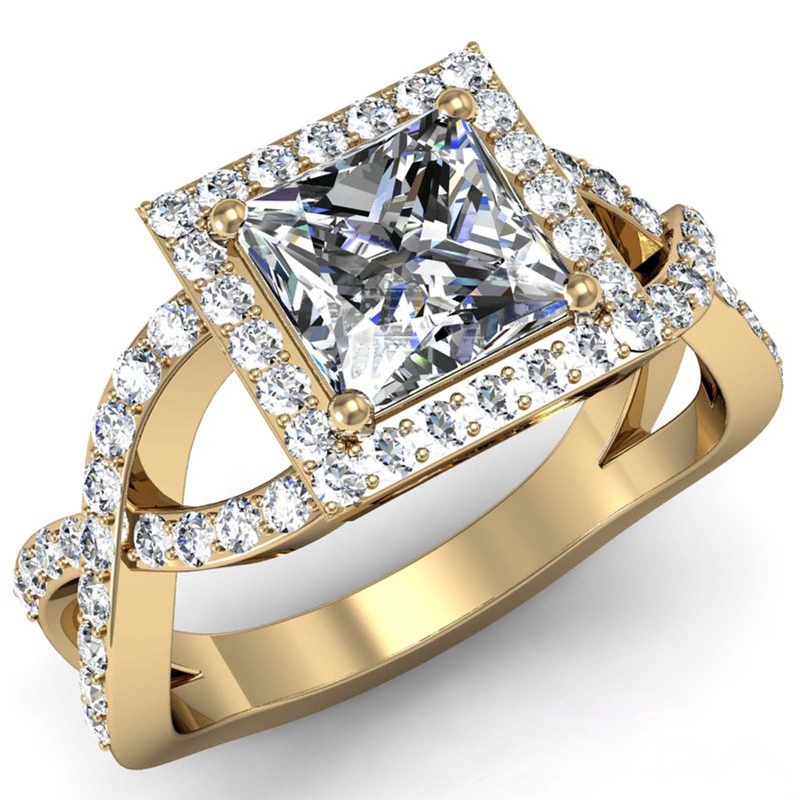 style Engagement Ring, center is Princess shape Diamond Report by IGI, D Color & VS1 clarity, Made in 18k Yellow Gold (1.7 ct. tw.)