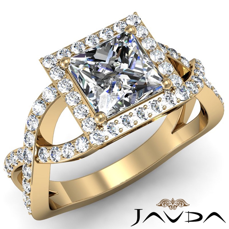 Diamond Engagement Princess Semi Mount Ring Split-Curve Shank 18k Yellow Gold 0.68Ct.