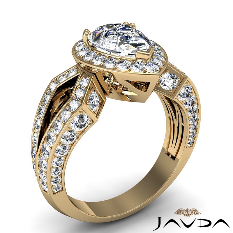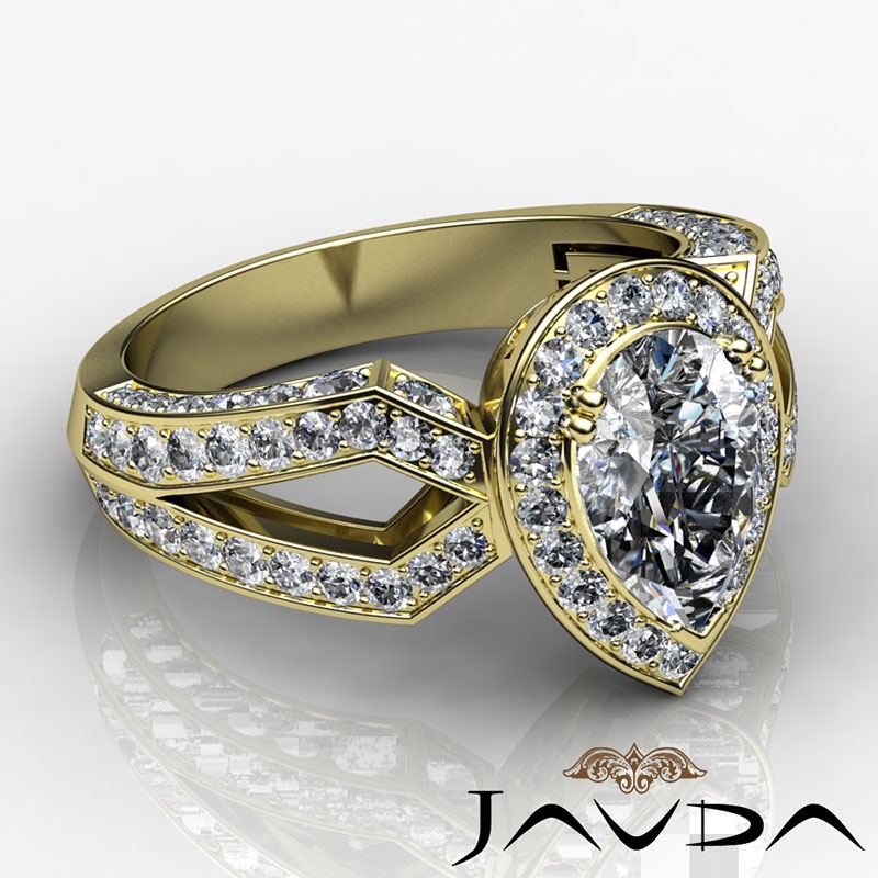 Pear Cut Halo Setting Diamond Engagement Ring Semi Mount 18k Yellow Gold 1.35Ct.