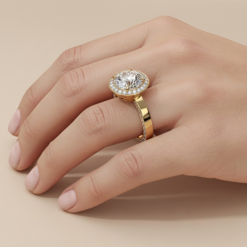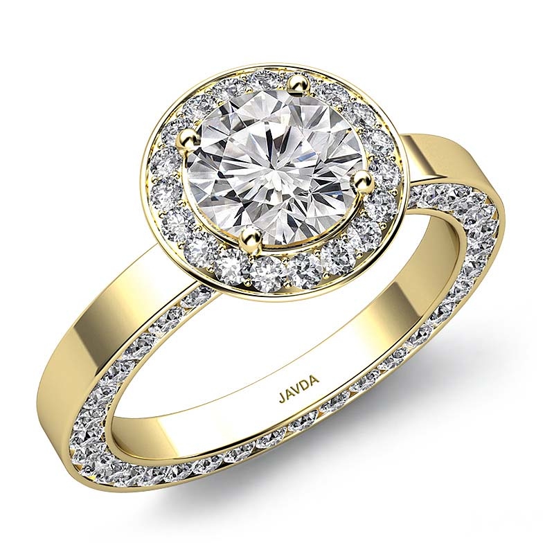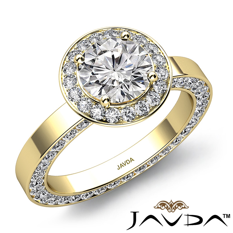 Round Cut Semi Mount Pave Setting Diamond Engagement Ring 14k Yellow Gold 1.33Ct - javda.com