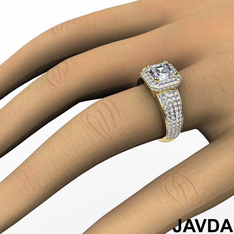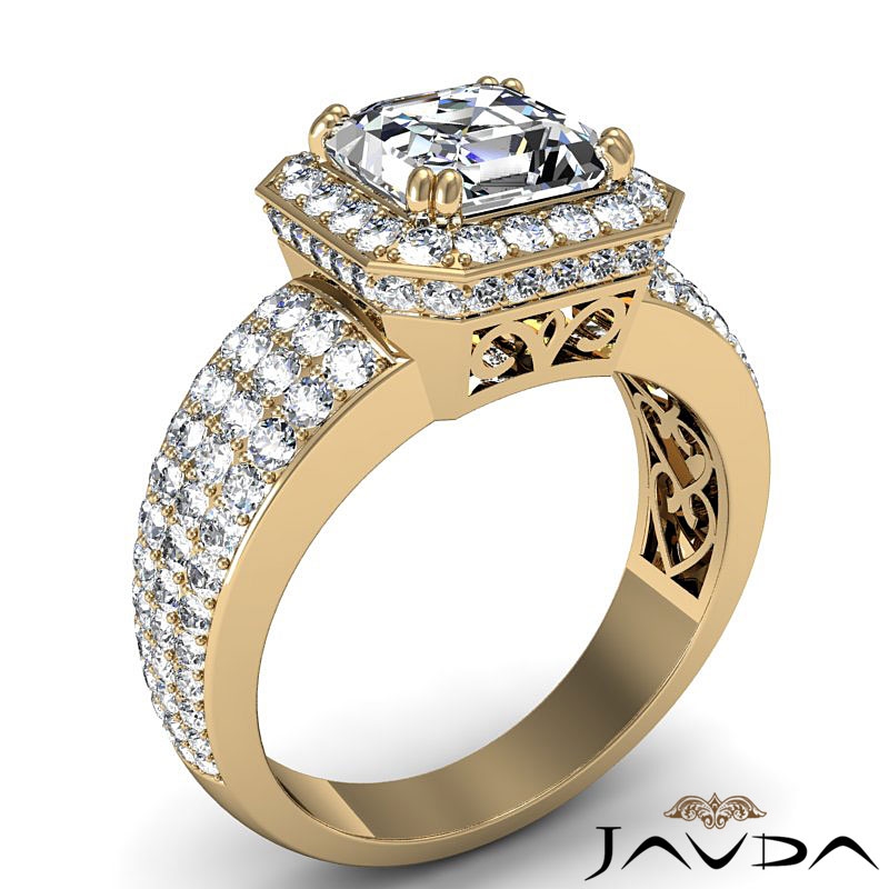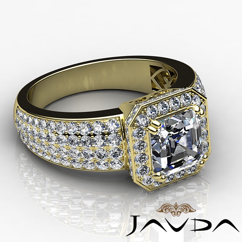 4 Row Shank Circa Halo Pave style Engagement Ring, center is Asscher shape Diamond Report by IGI, D Color & VS1 clarity, Made in 14k Yellow Gold (3.49 ct. tw.)
