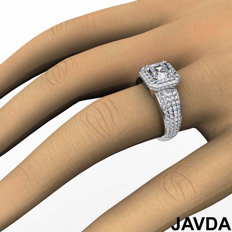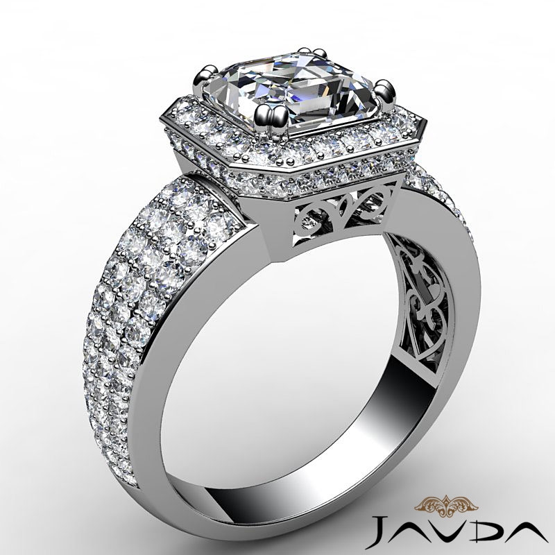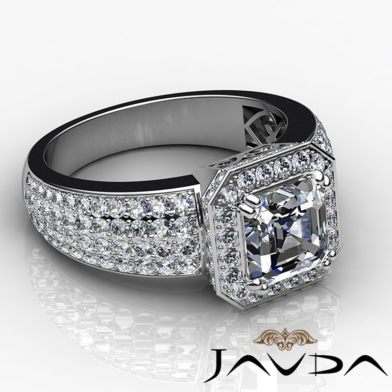 4 Row Shank Circa Halo Pave style Engagement Ring, center is Asscher shape Diamond Report by IGI, D Color & VS1 clarity, Made in 18k White Gold (3.49 ct. tw.)