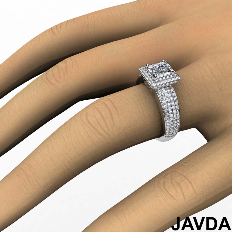 Circa Halo 4 Row Pave Shank style Engagement Ring, center is Princess shape Diamond Report by GIA, J Color & VS1 clarity, Made in Platinum 950 (2.93 ct. tw.)