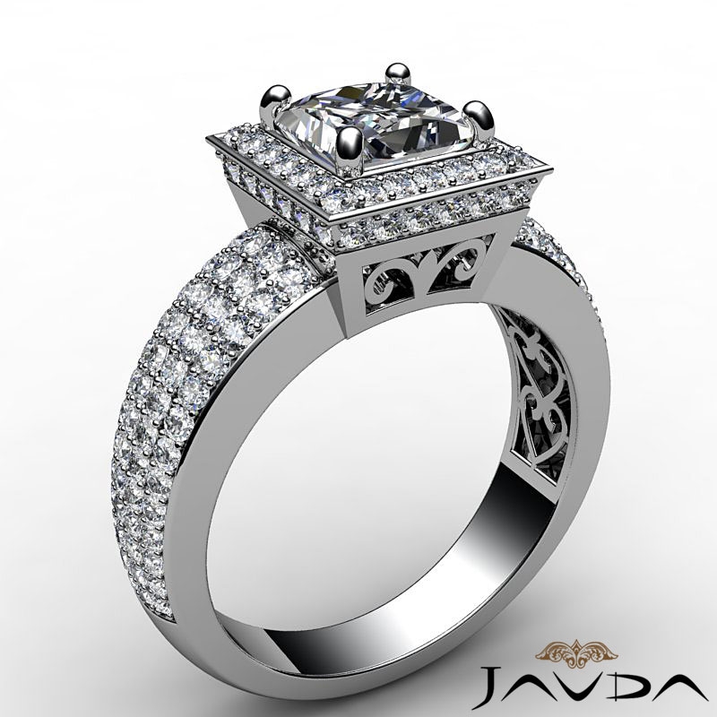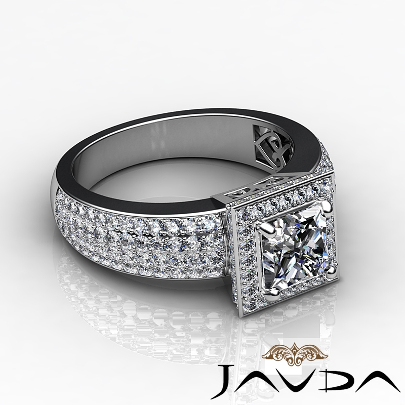 Diamond Engagement Ring Princess Semi Mount Halo Pave Setting Platinum 950 2Ct.