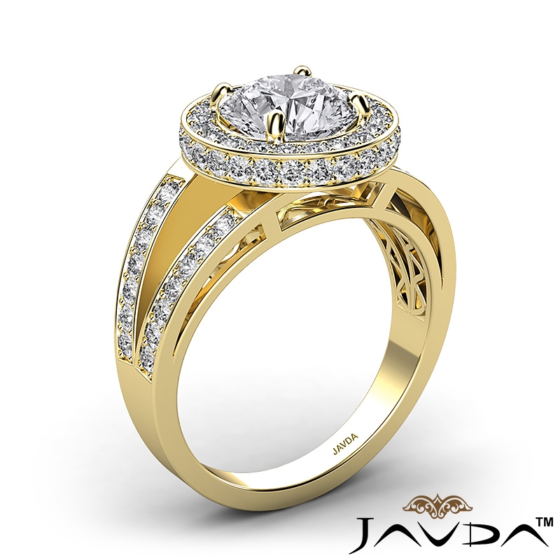 Circa Halo Filigree Split Band style Engagement Ring, center is Round shape Diamond Report by GIA, I Color & SI1 clarity, Made in 18k Yellow Gold (1.76 ct. tw.)