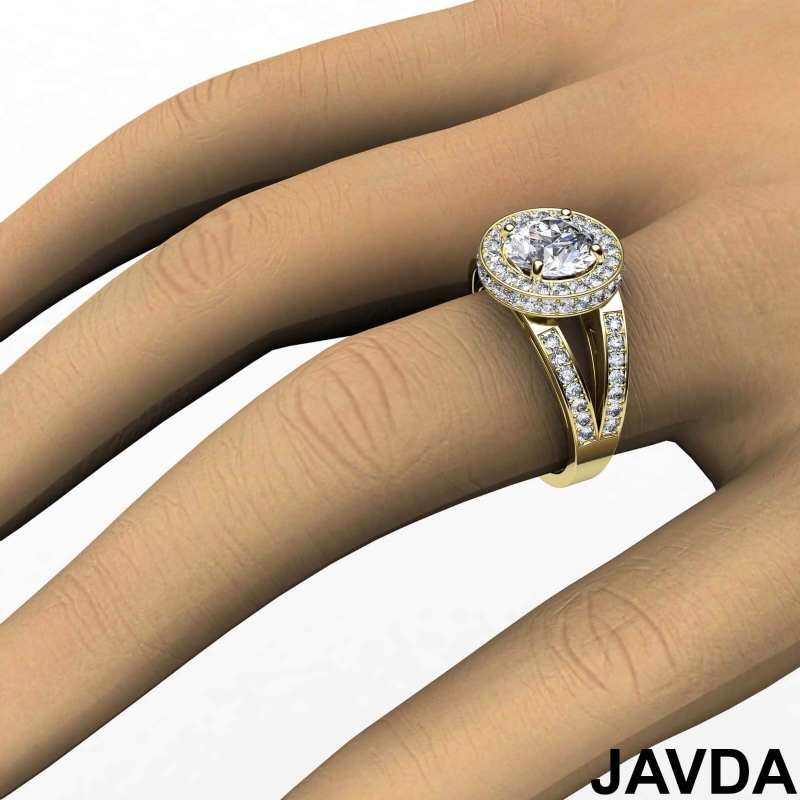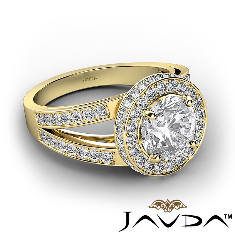 Round Semi Mount Diamond Engagement Halo Pave Setting Ring 18k Yellow Gold 0.76Ct.