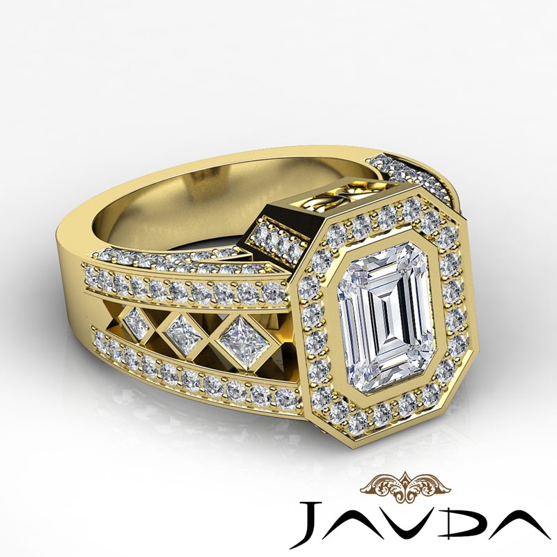 Emerald Semi-Mount Vintage Diamond Engagement Ring Halo Pave Setting 18k Yellow Gold 2.7Ct.