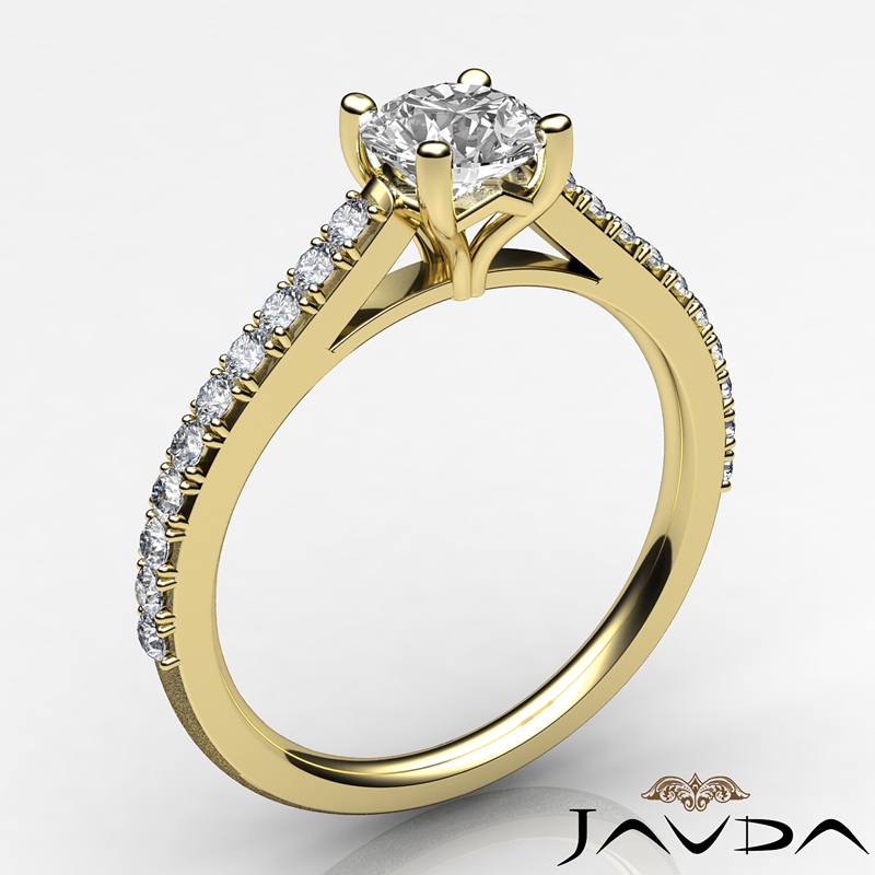 4 Prong Setting Cathedral style Engagement Ring, center is Round shape Diamond Report by GIA, F Color & VS2 clarity, Made in 14k Yellow Gold (0.8 ct. tw.)