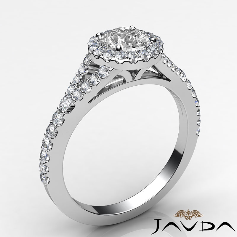 Halo Split Shank French U Pave style Engagement Ring, center is Round shape Diamond Report by GIA, F Color & VS2 clarity, Made in 18k White Gold (1 ct. tw.)