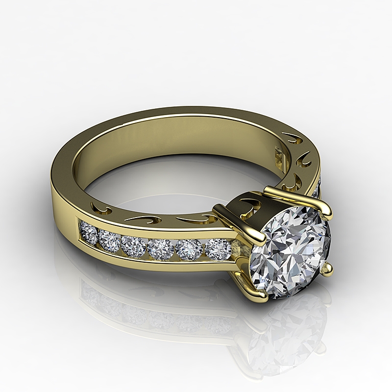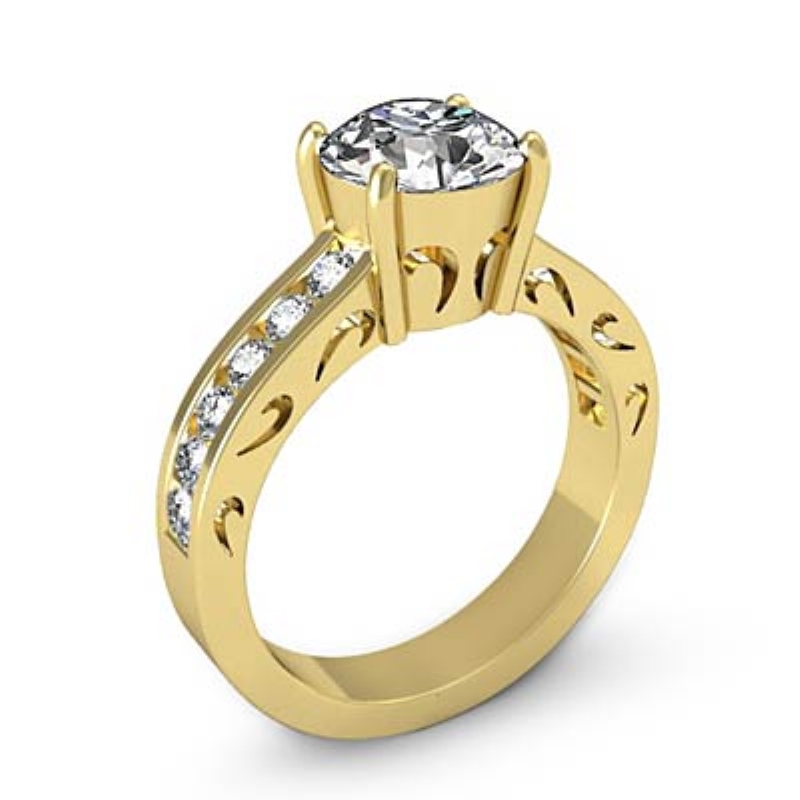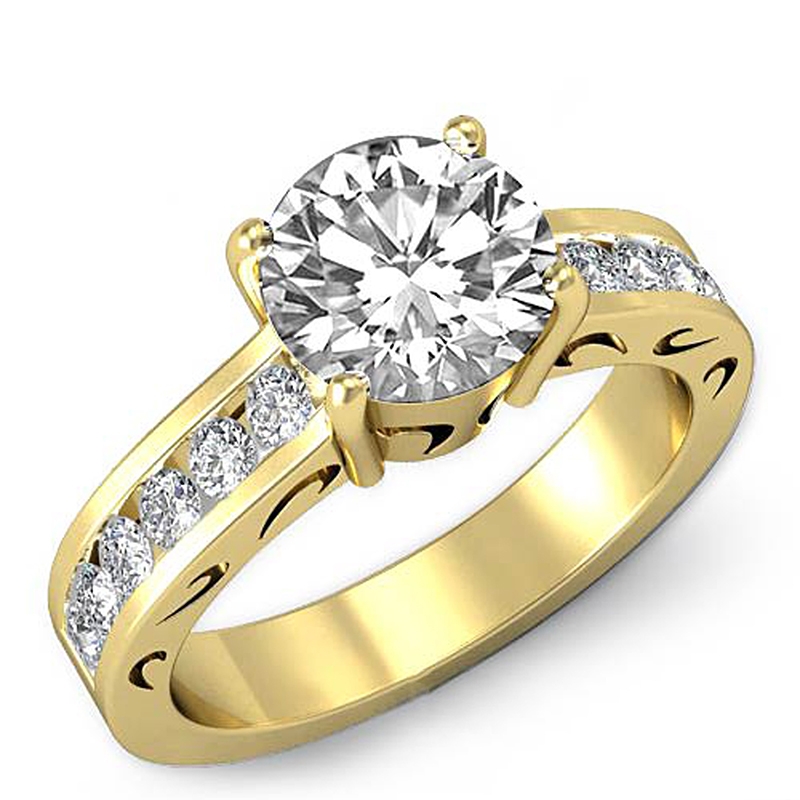 0.5Ct Round Diamond Semi Mount Engagement Ring Channel 14k Yellow Gold.