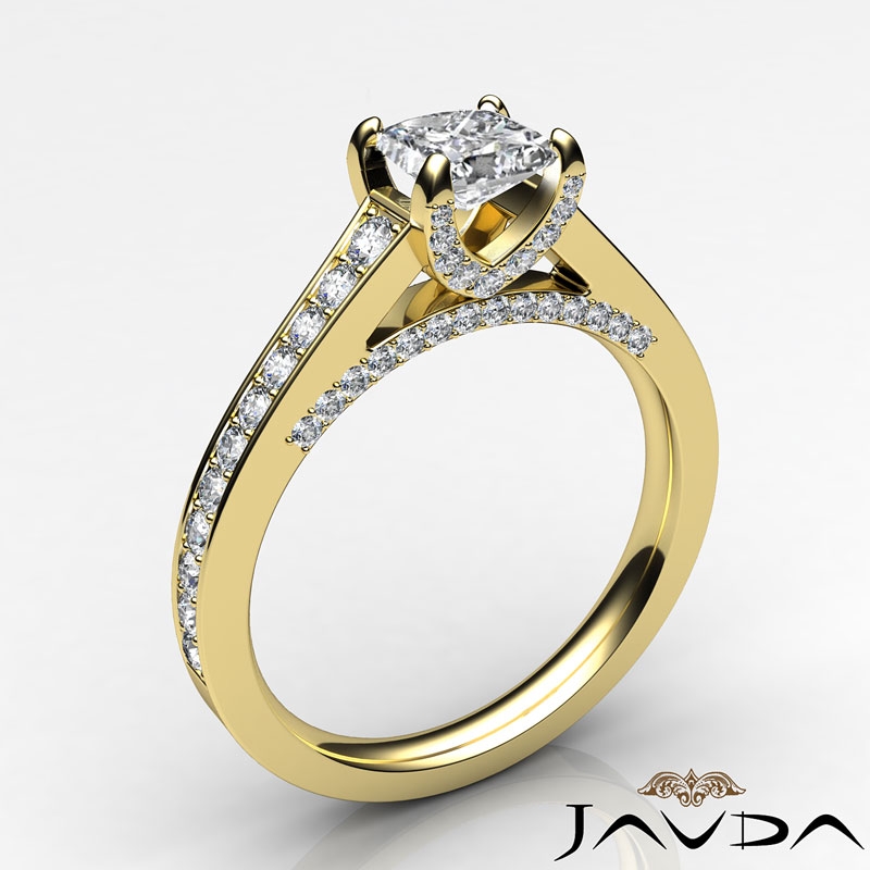 Diamond Engagement Princess Cut Semi Mount Pave Setting Ring 18k Yellow Gold 0.75Ct - javda.com