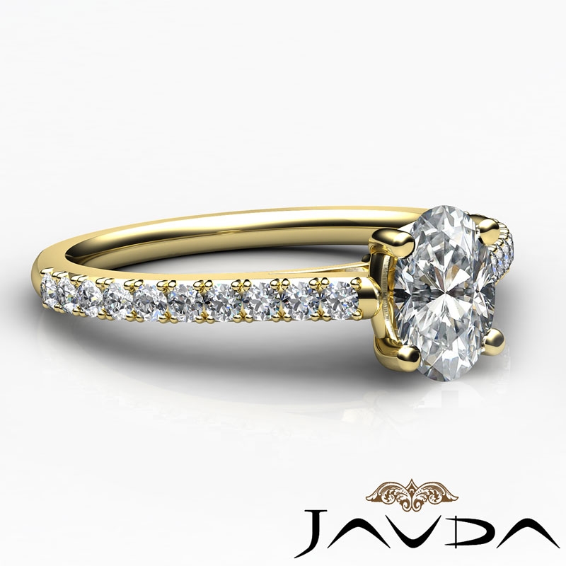 Classic Prong Set Sidestone style Engagement Ring, center is Oval shape Diamond Report by GIA, E Color & SI1 clarity, Made in 14k Yellow Gold (0.8 ct. tw.)