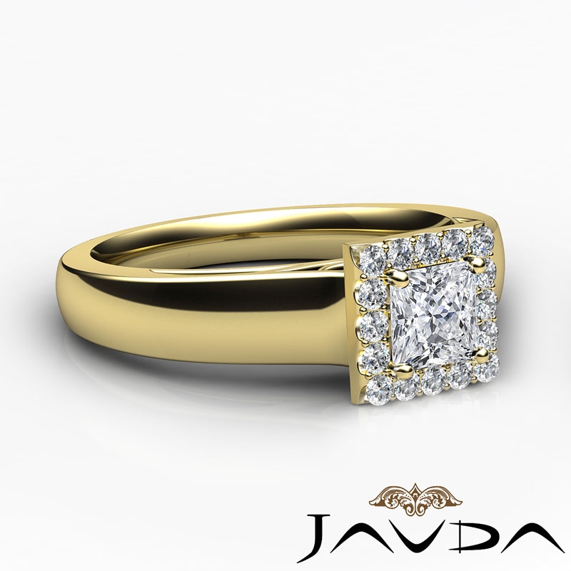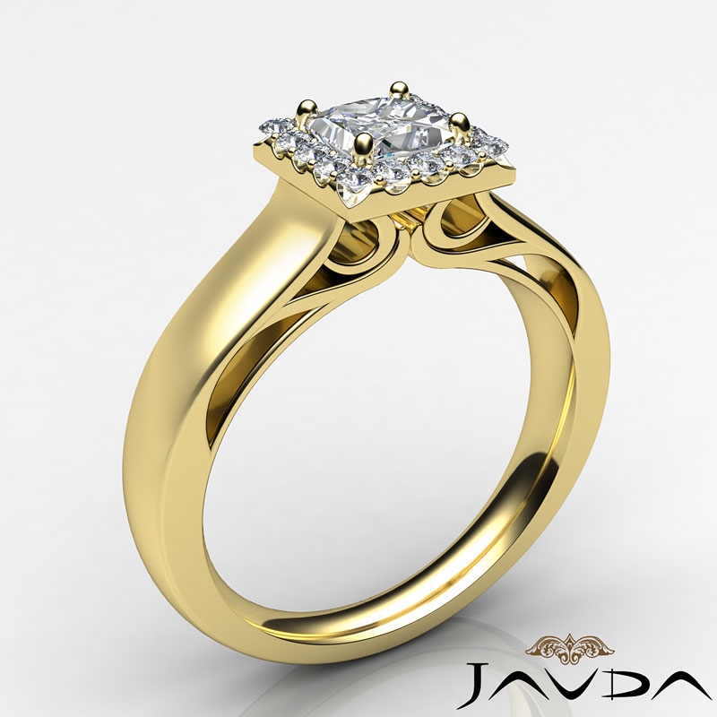 Princess Diamond Engagement Halo Pave Setting Semi Mount Ring 14k Yellow Gold 0.2Ct.