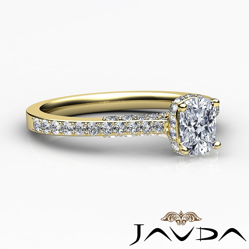 Diamond Engagement Pave Setting 14k Yellow Gold Cushion Semi Mount Ring 0.95Ct.