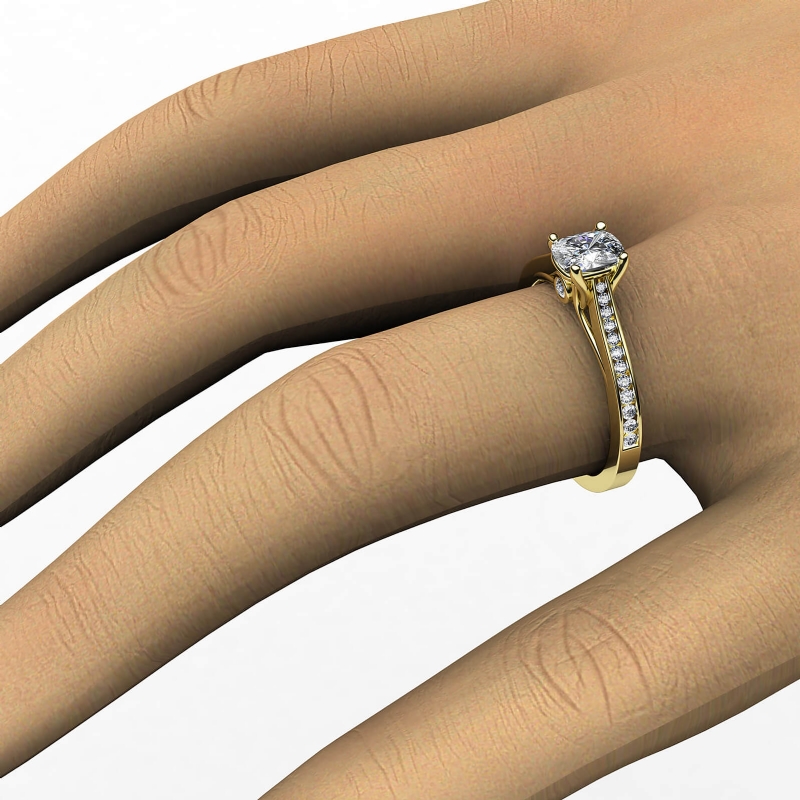 Trellis Bezel Accent Channel style Engagement Ring, center is Cushion shape Diamond Report by GIA, E Color & VS1 clarity, Made in 14k Yellow Gold (0.7 ct. tw.)
