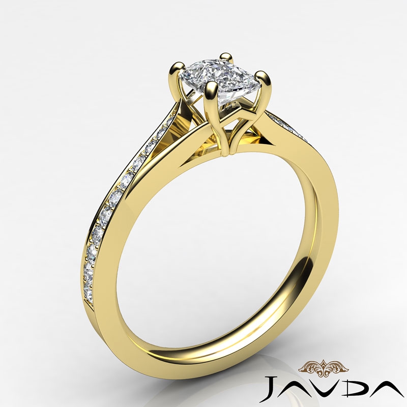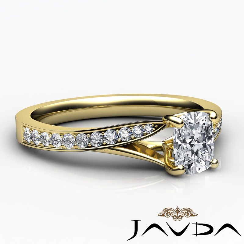 Classic 4 Prong Pave Set style Engagement Ring, center is Cushion shape Diamond Report by GIA, D Color & VS1 clarity, Made in 14k Yellow Gold (0.85 ct. tw.)