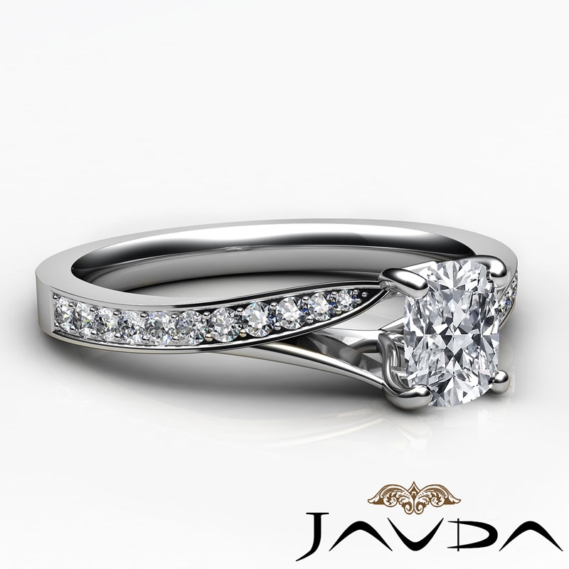 Classic 4 Prong Pave Set style Engagement Ring, center is Cushion shape Diamond Report by GIA, D Color & VS1 clarity, Made in 18k White Gold (0.85 ct. tw.)